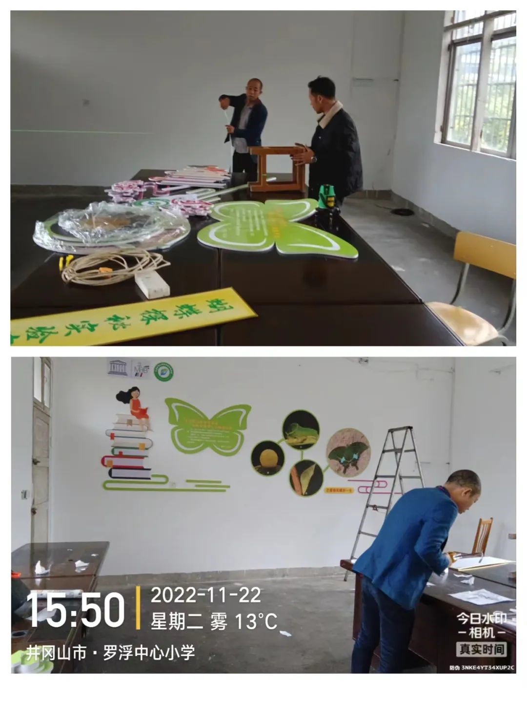 3、11月22日,请广告公司人员完成蝴蝶探秘实验室背景墙安装。