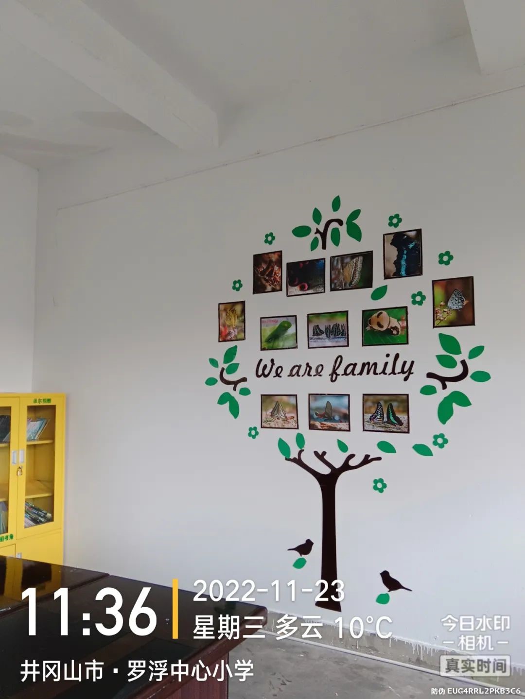 4、11月23日,保护站工作同志一起自己动手粘贴树型墙纸和蝴蝶照片
