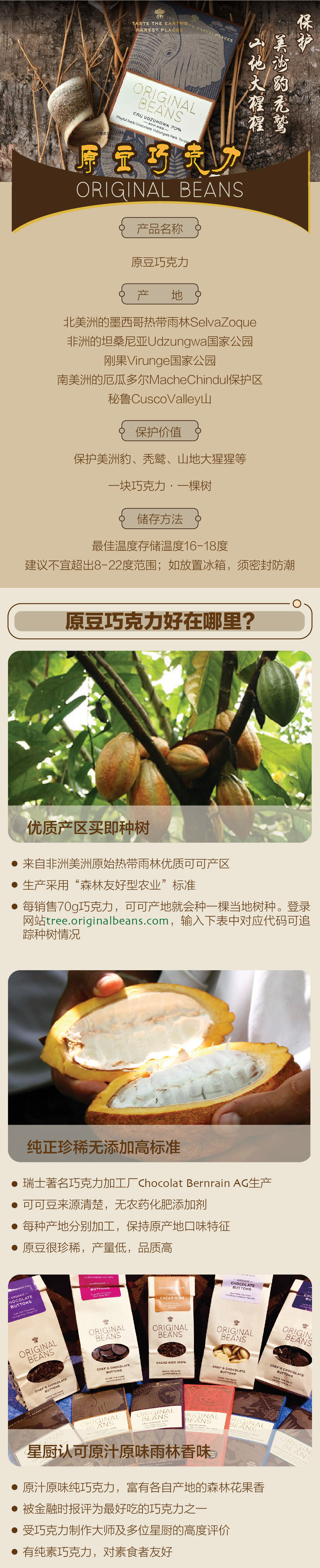 原豆巧克力的可可豆生产采用“森林友好型农业”的标准(比雨林联盟的标准严格)。这个标准的应用控制是基于原豆小组(Anders,Hilde,Jan)在现场监控来自合作伙伴GPS数据。生产、加工和运输过程中禁止使用化肥农药等化学物质,避免被使用了化学物质的周边农场或塑料袋污染,并杜绝任何添加剂。