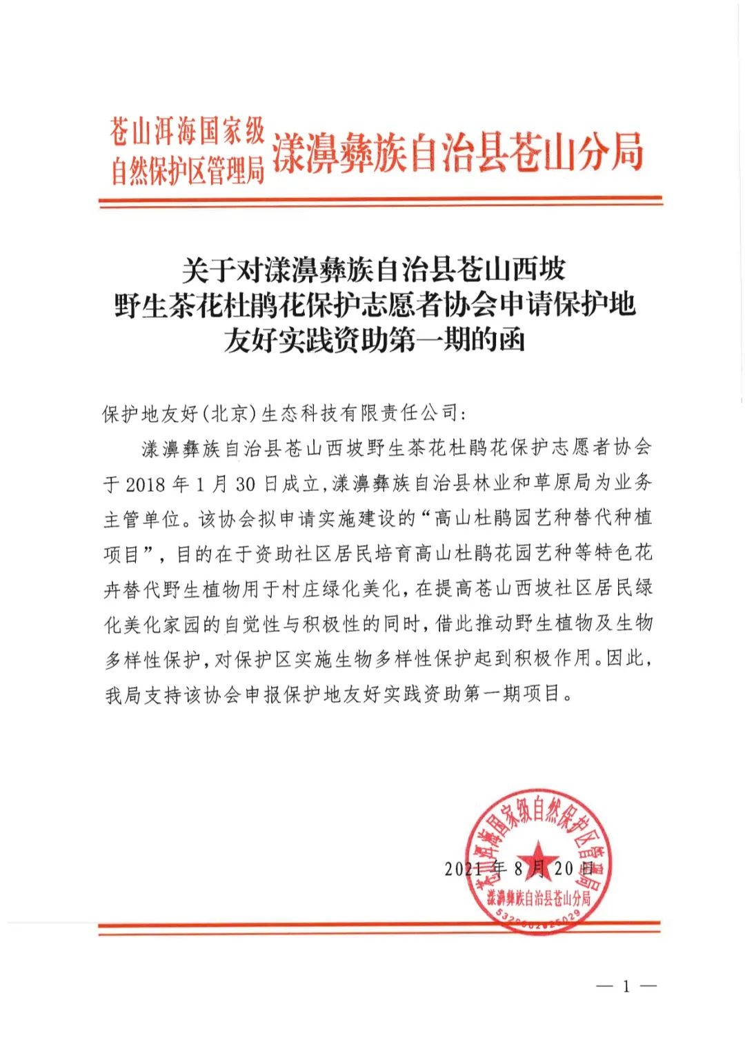 一、申请人或机构:云南大理漾濞县苍山西坡野生茶花杜鹃花保护志愿者协会