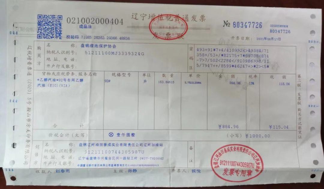 1、辽河口自然保护区盘锦湿地保护协会科普基地购买饮用水罐6950元,其中300元为保护地友好项目花销费用。