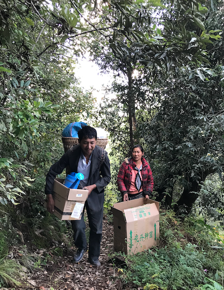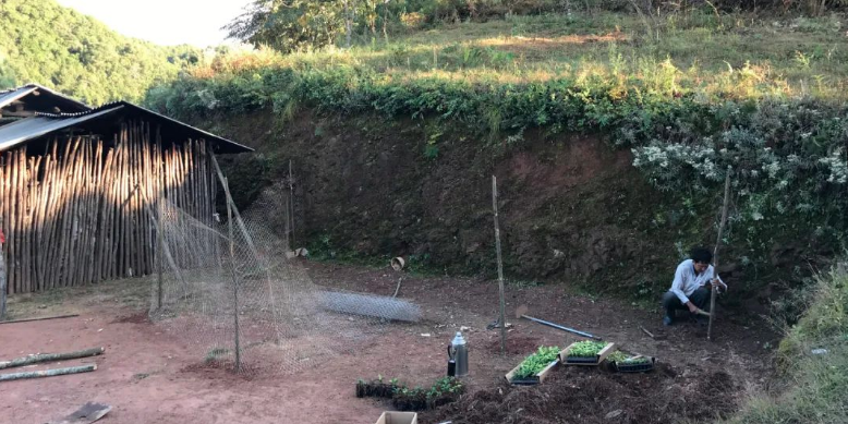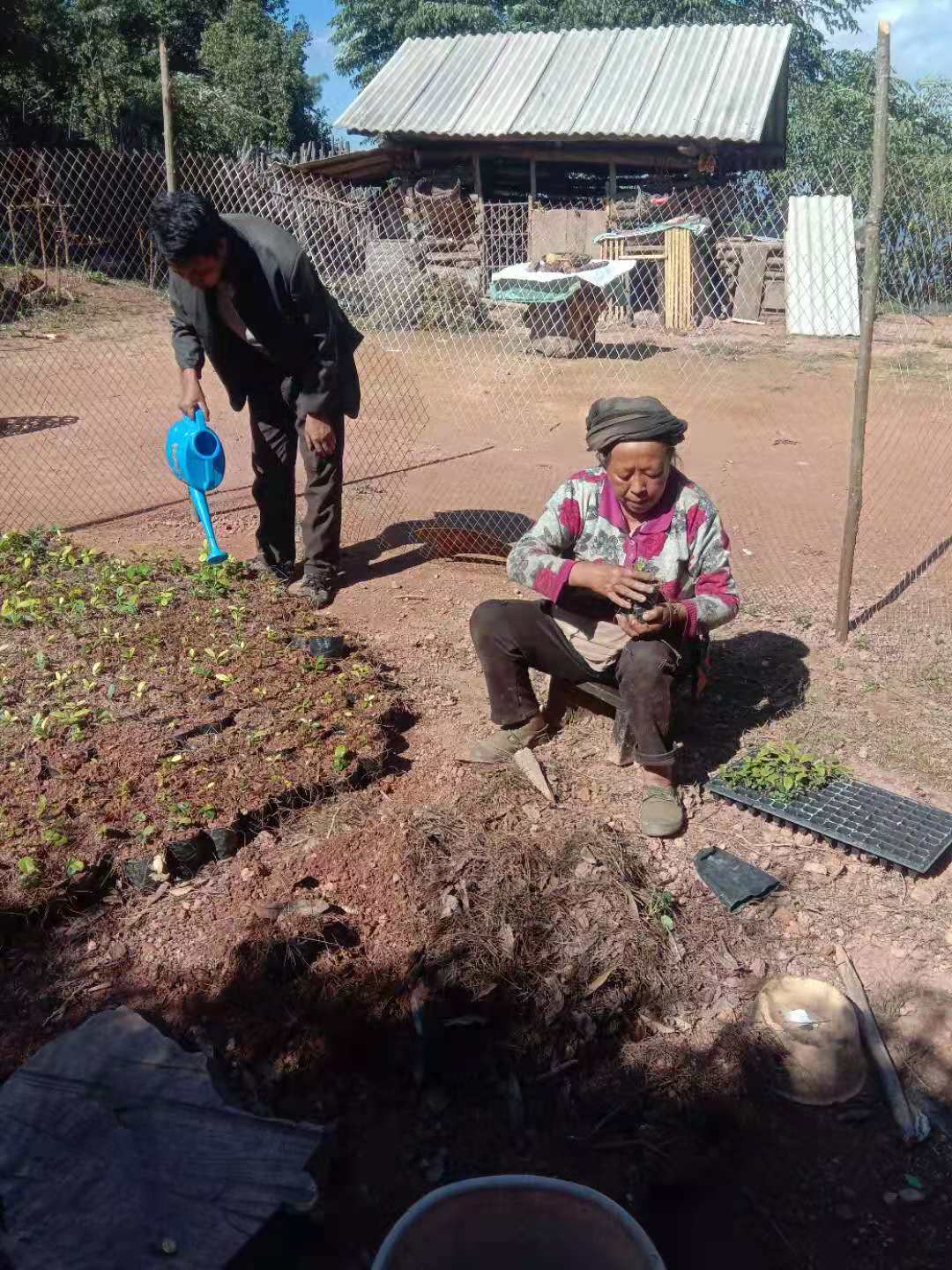 2021年10月日,志愿者与合作农户一起携带相关育苗材料到项目实施地漾濞县苍山西镇花椒园村委会大浪坝小组小水井赵正康家开展穴盘苗移栽工作。