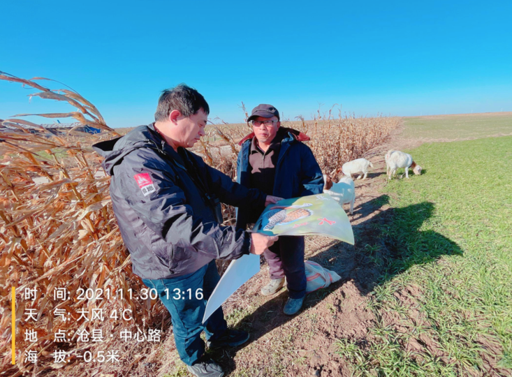 志愿者在大鸨越冬地周边给牧民普法宣传