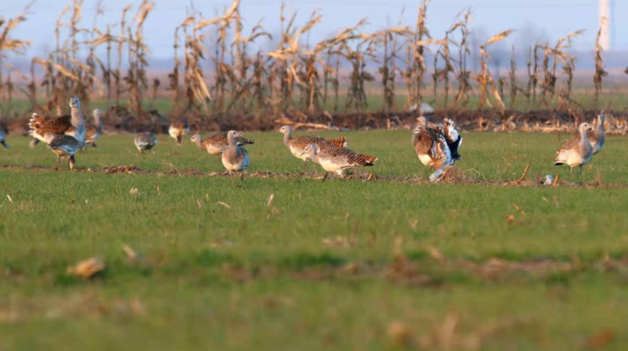 除此以外,志愿者巡护的范围也十分广,不仅限于大鸨保护地,还会辐射至周边区域,保护其他的野生动物。比如天津宁河区的东方白鹳,每年都有会数千只的东方白鹳等鸟类前往人工鱼塘觅食,这就需要志愿者不停歇地巡护和宣传,,保障它们能补充好体能继续往南迁徙。