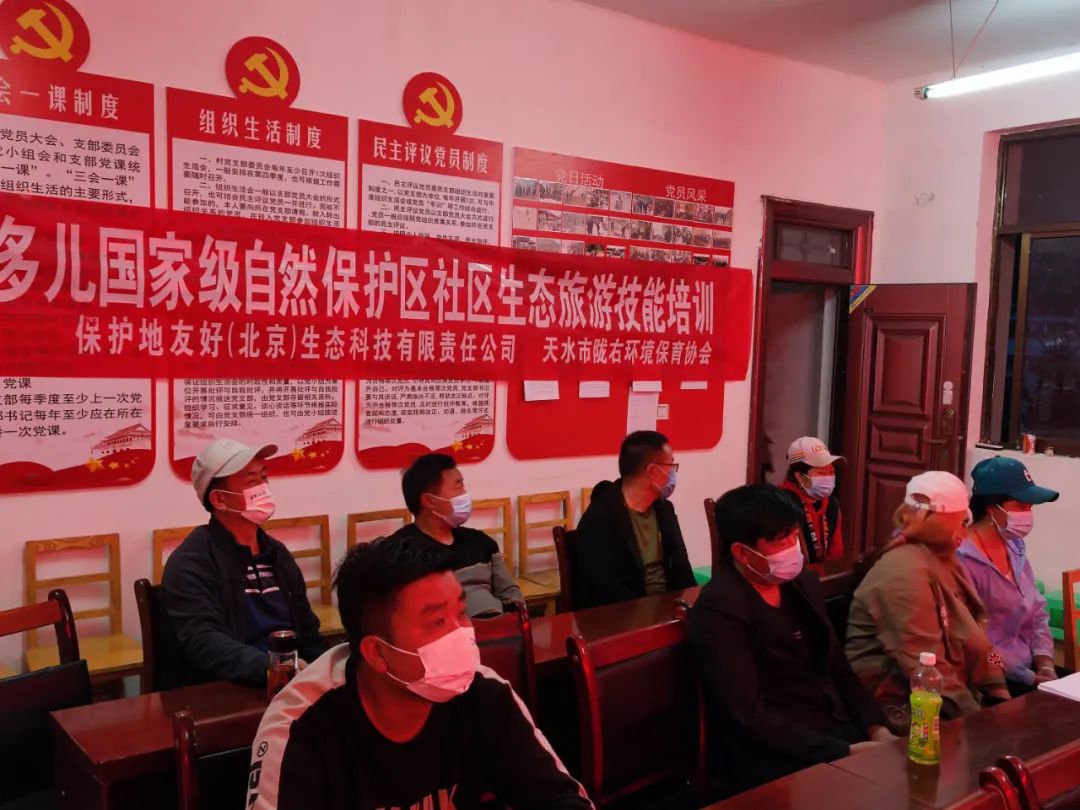 2022年5月6日,在遵守当地疫情防控政策下,联合甘肃多儿国家级自然保护区管护中心和达益村村委,共同组织村民开展保护地友好项目支持的甘肃多儿国家级自然保护区社区生态旅游技能培训,参与人次24人。