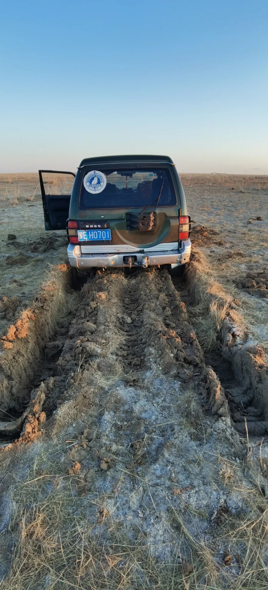 巡护时车陷入沼泽里