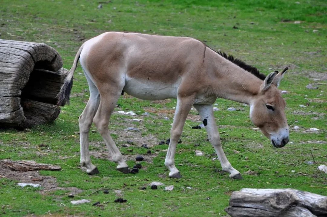 蒙古野驴(Equus hemionus)与藏野驴相比,吻部稍细长,耳长而尖,体型比藏野驴小,在我国分布在新疆、内蒙古和甘肃等地。适应荒漠环境,具有极强的耐力。为国家一级保护动物。
