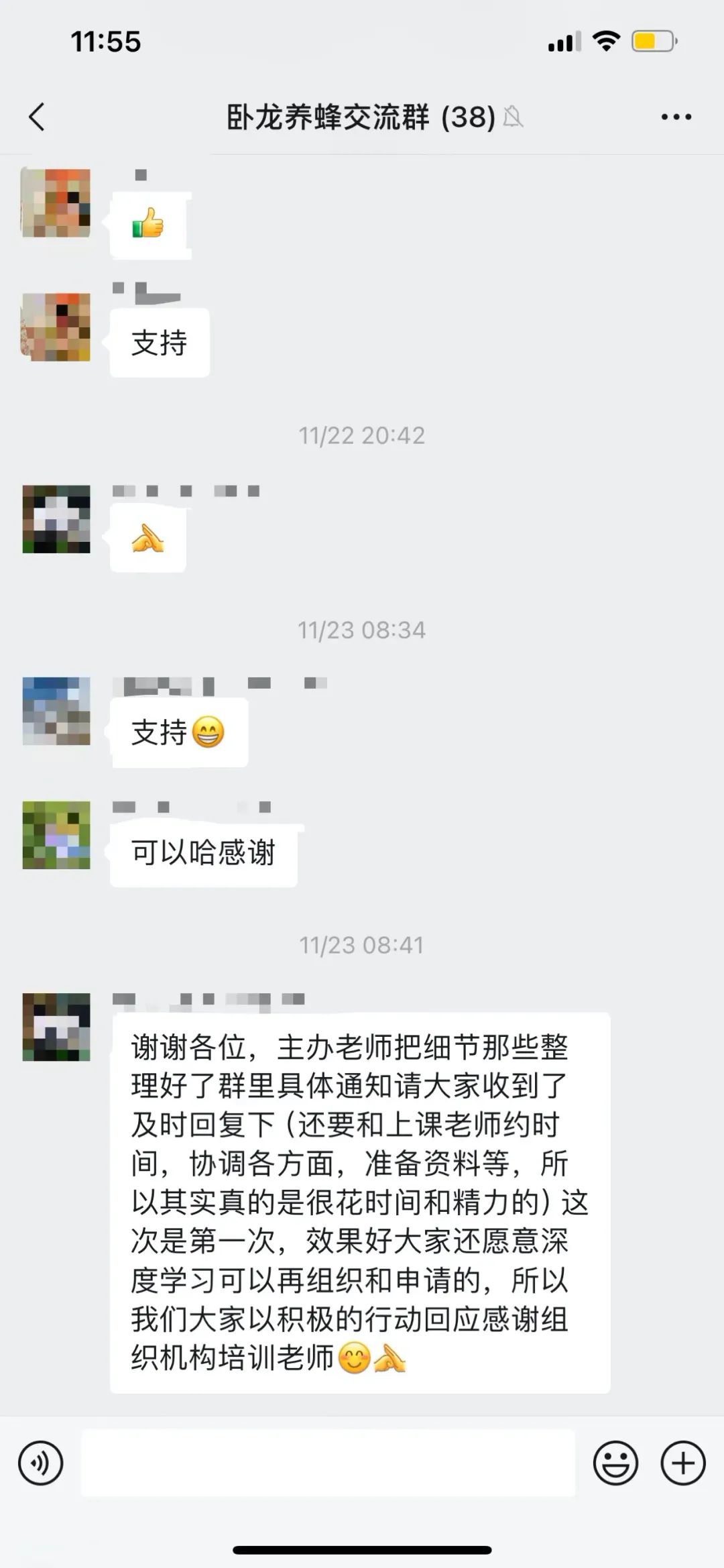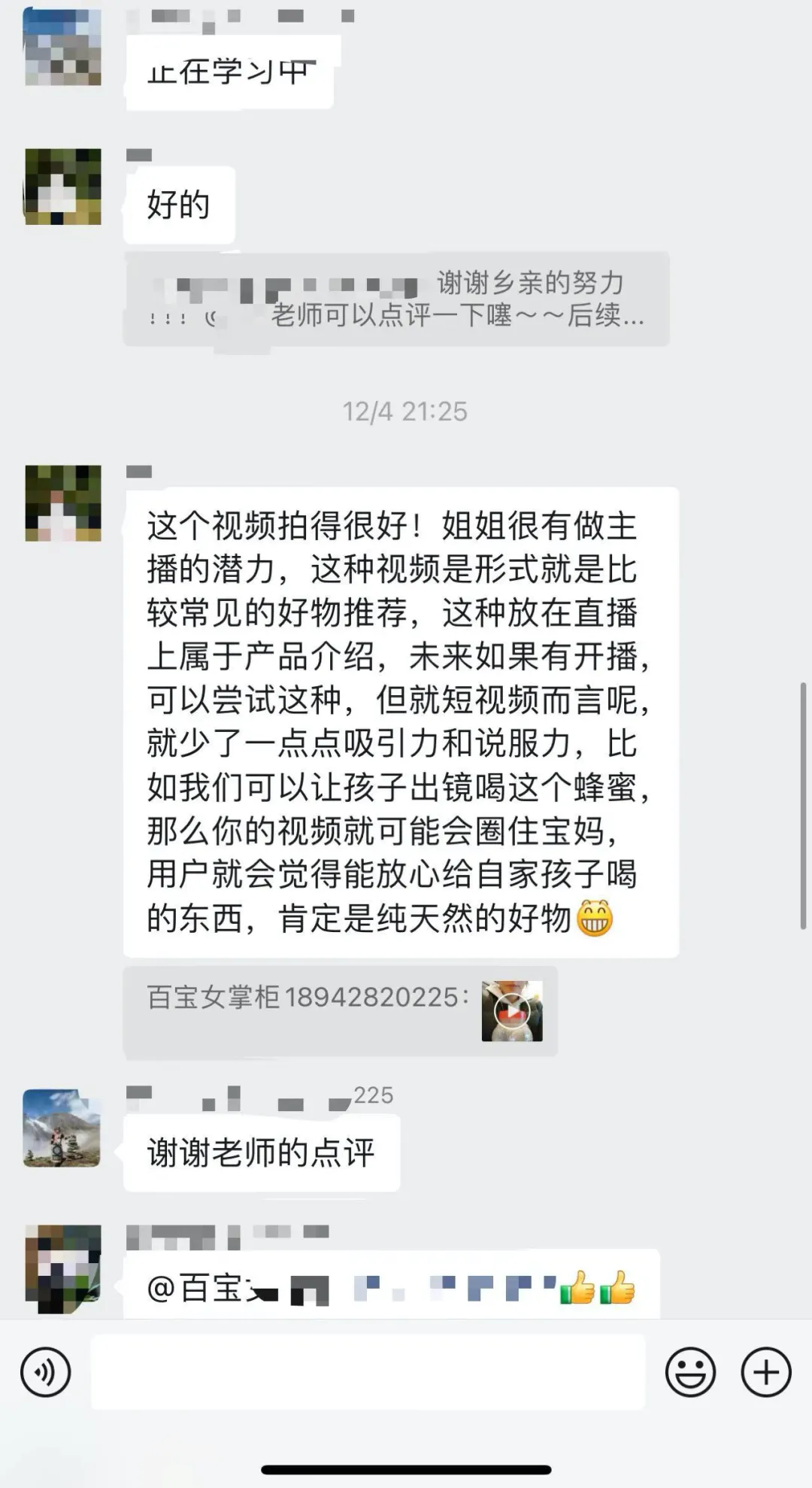 11月26日下午,开展了两小时左右的直播培训,主要介绍如何挖掘和制作直播内容,通过短视频开展农产品线上销售。并在直播结束后收集到蜂农的直播视频作业并进行了点评。